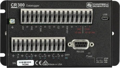 The CR300 is a multi-purpose, compact measurement and control data logger. This small, low-cost, high-value data logger offers fast communications, low power requirements, built-in USB, and excellent analog input accuracy and resolution. The CR300 can measure most hydrological, meteorological, environmental, and industrial sensors. It concentrates data, makes it available over varied networks, and delivers it using your preferred protocol. It also performs automated on-site or remote decision making for control and M2M communications. The CR300 is ideal for small applications requiring long-term, remote monitoring and control.