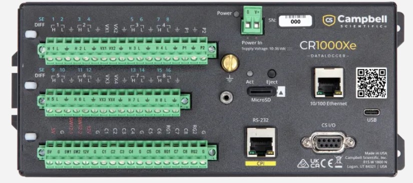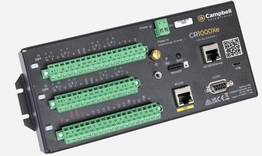 The CR1000Xe is a low-powered device that measures analog and digital sensors, processes and stores measurements, and adapts to any communications link. It stores data and programs in non-volatile flash memory. The onboard programming language—common to all Campbell Scientific data loggers—allows users to create solutions perfectly tailored to the application.