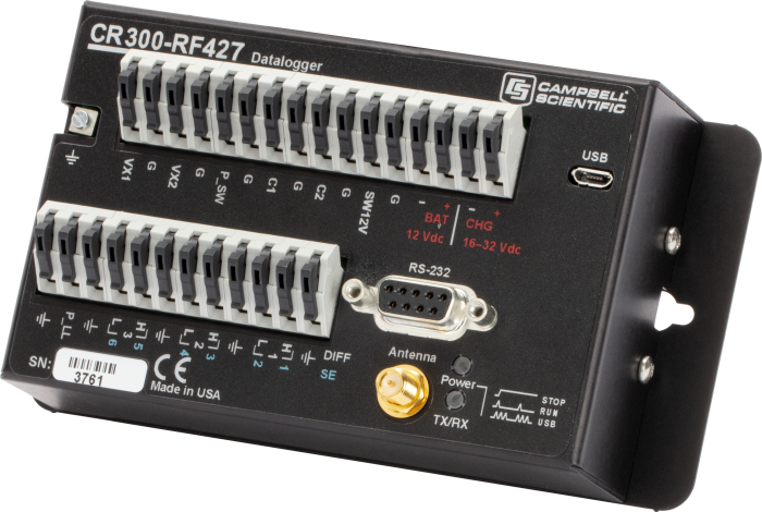 The CR300 is a multi-purpose, compact measurement and control data logger. This small, low-cost, high-value data logger offers fast communications, low power requirements, built-in USB, and excellent analog input accuracy and resolution. The CR300 can measure most hydrological, meteorological, environmental, and industrial sensors. It concentrates data, makes it available over varied networks, and delivers it using your preferred protocol. It also performs automated on-site or remote decision making for control and M2M communications. The CR300 is ideal for small applications requiring long-term, remote monitoring and control.