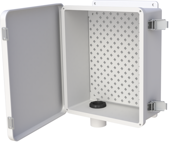 - White, UV-stabilized enclosure reflects solar radiation—reducing temperature gradients inside the enclosure without requiring a separate radiation shield