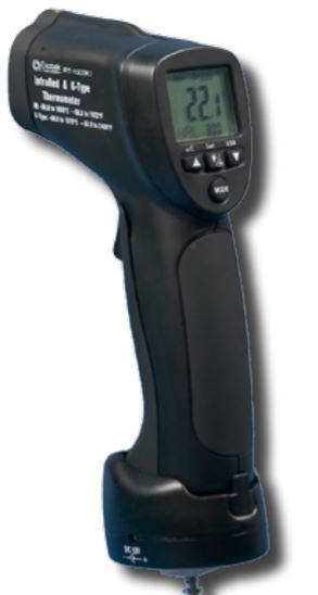 This device offers non-contact (infrared) temperature measurements capability. The built-in laser pointer increases target accuracy while the backlight LCD and handy push-buttons combine for convenient, ergonomic operation. Type K thermocouple functionality is also built-in. Proper use and care of this meter will provide years of reliable service.