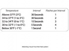 - When the temperature approaches freezing, the high-powered LED light (visible from about two miles) changes flash frequency and pattern to indicate temperature conditions at a glance