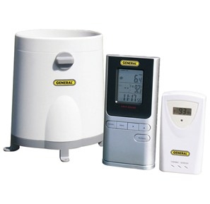 - Includes indoor and wireless outdoor thermometers and rain alarm