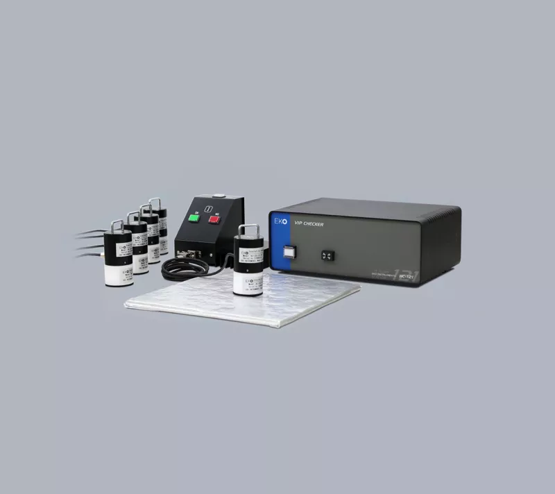 Vacuum Insulation Panel (VIP) Checker HC-121 is developed to check the quality, estimated thermal conductivity, of VIPs at the final production stage. When VIPs have insufficient sealing of laminated film or changing of material characteristics inside, the thermal conductivity of VIPs will increase. HC-121 can check the condition of increasing thermal conductivity as OK or NG index. A maximum of 5 sensor heads can be connected to the main unit and can be handled independently.