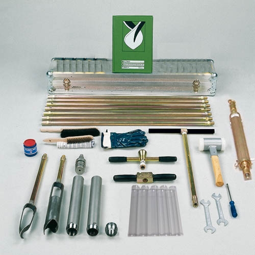 - The sets, which packed in an aluminium transport case, contain a hand auger for pre- and clean drilling of the borehole, the core sampler with the sampler tubes and soil sample containers and maintenance equipment.