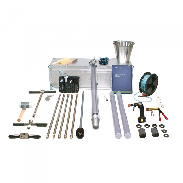Sediment core sampler type Beeker, rod operated, with closable cutting head and piston. Standard set for sampling and discharging core samples, length 1 m, in bucket or jars. Suitable for sampling submerged soils to a depth of 5 m of very watery sediment to non-consolidated sand.