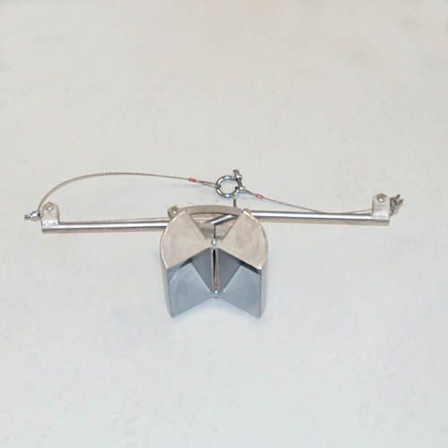 At the surface the jaws are pushed open and kept in that position by a hook. To keep the hook in the right position the Van Veen grab should be sunk at a steady, not too high, pace. Both jaws are fitted with holes to allow air to escape during the sinking. If these holes were not there, the air would escape when taking the sample, which would result in interference with the sample. As soon as the jaws touch the bottom, the hook loosens its grip, so that, when hoisting the rope again the jaws will shut tight because of the leverage by the rods. The amount of drawn sample mainly depends on the compactness of the bottom. A heavier grab catches more than a lighter one. Therefore all models have been fitted with weighting blocks. Moreover, when a strong current prevails, the cable of the heavier grab deviates less from the vertical than the lighter one. Recommended to take at least 6 samples from every location and to base your conclusion on the total of the samples. In spite of the heavy closing force, it can happen that a pebble sticks between the buckets. In such case the sample is not representative; the smaller parts may have excaped during hoisting. Once surfaced, the grab is emptied and cleaned.