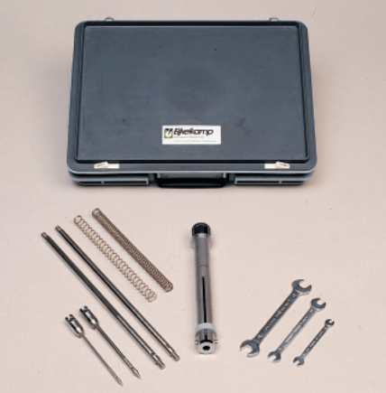 The principle of the hand penetrometer is based on measuring the highest penetration resistance of a cone over a distance of about 10 cm. The penetration resistance is measured by means of a compression spring. A number of cones and compression springs are available. A certain combination of a cone and a compression spring is selected based on the expected penetration resistance. If the expected penetration resistance is high, a cone with a small surface is selected and a compression spring with a large maximum force and visa versa.