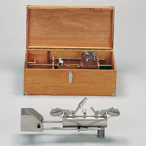 For instance to determine the measure of mud-and/or soil transport by water). relative to the direction of flow. The standard set comprises, among other items: the stainless steel water sampler, a falling weight, a hand winch and a telescopic arm with a fastening clip and depth counter. The whole is packaged in a transport case.