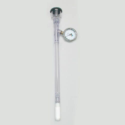 The Jet-fill tensiometer basically has the same components as the standard tensiometer but is equipped with a reservoir and a refill mechanism. At a push of the button, the Jet-fill mechanism instantly injects water from the reservoir into the body of the tensiometer and removes accumulated air. This tensiometer can be provided in different lengths as well.
