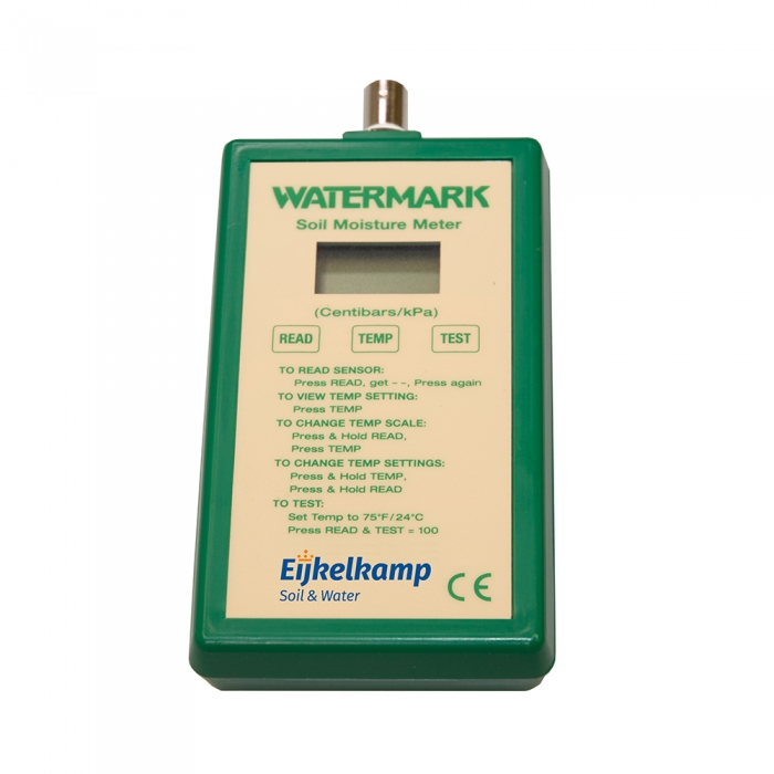Soil moisture sensors that measure the moisture tension in the soil are read out with the soil moisture meter Watermark. The measuring principle is similar to that of the gypsum block system. The special sensors, however, do not dissolve in the soil and have a more consistent distribution of pores so that more accurate measurements are possible.