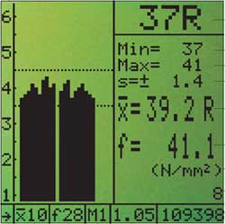 - Non-destructive measurement of the concrete compressive strength and control of the uniform concrete quality (in-situ concrete and prefabricated structures)