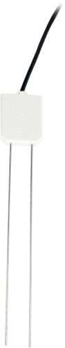 Soil bulk electrical conductivity is also calculated from the attenuation measurement. A thermistor in thermal contact with a probe rod near the epoxy surface measures temperature. Horizontal installation of the sensor provides accurate soil temperature measurement at the same depth as the water content. Temperature measurement in other orientations will be that of the region near the rod entrance into the epoxy body.