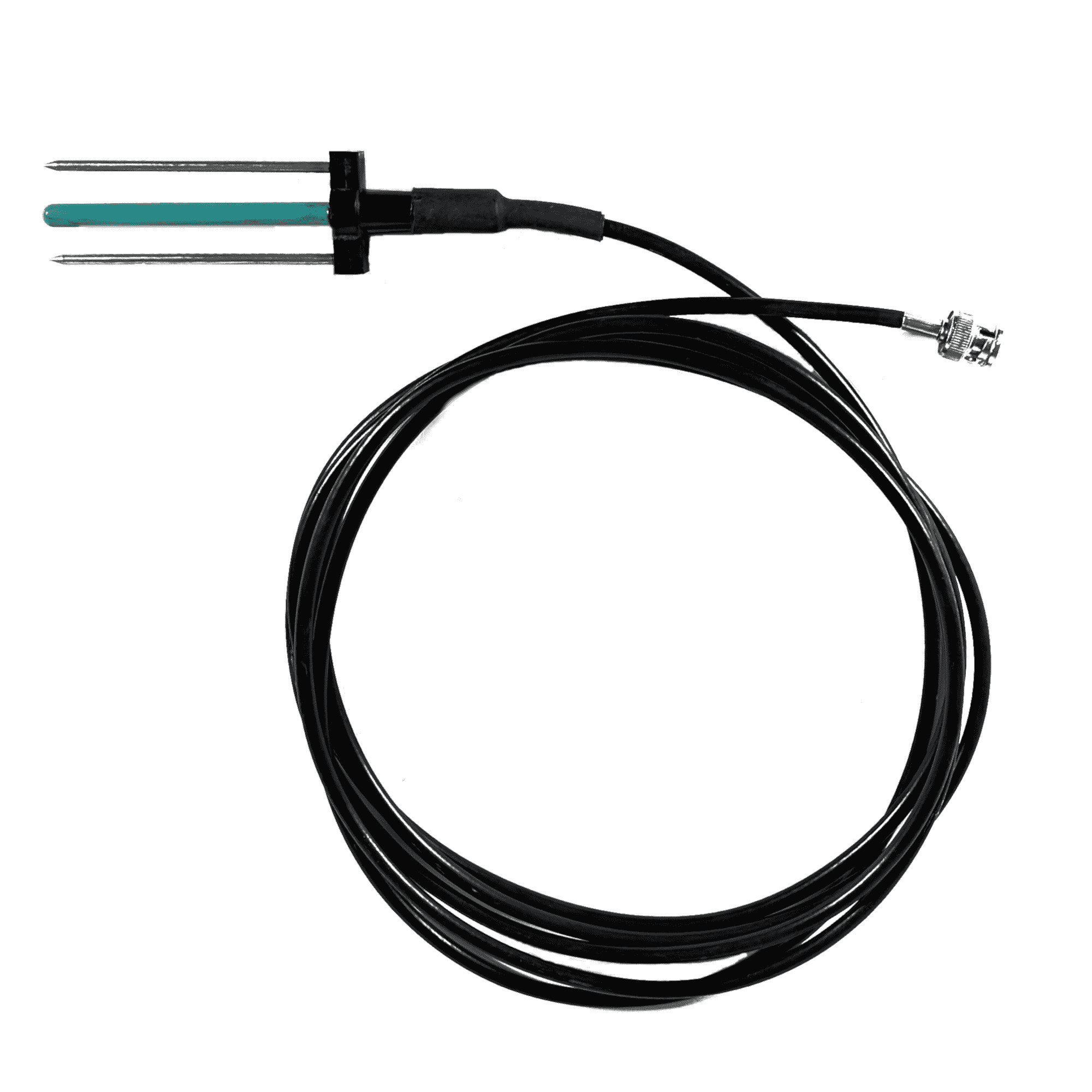 The Mini-Buriable Waveguide is designed for use in making near-surface shallow measurements, and in laboratory column studies. The rods are 8 cm long, with a 2.5 cm spacing between the outer rods, 3-meter cable length. The centre conductor is coated to enable very high EC soil testing. (The RF signal cannot get shunted)