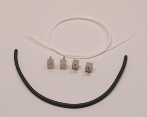 Includes 4 right angle outflow adapters, 3/16" O.D. Neoprene tubing, and 3/32" O.D. Nylon tubing. Useful for modifying the outflow path from extractors.