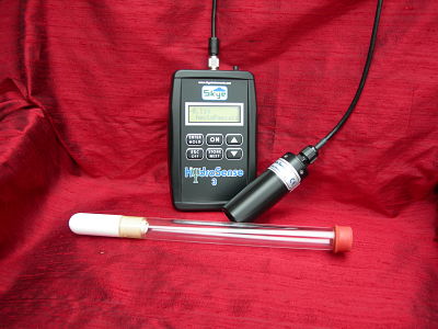 The clear perspex tubes with porous ceramic bulbs are sealed at the top with a septum stopper. To obtain the pressure reading inside the tube a Needle Sensor with HydroSense meter, which incorporates a pressure transducer, is used to pierce the septum stopper and the reading is displayed on the HydroSense meter. There is the facility in the meter to store readings from a great many locations.