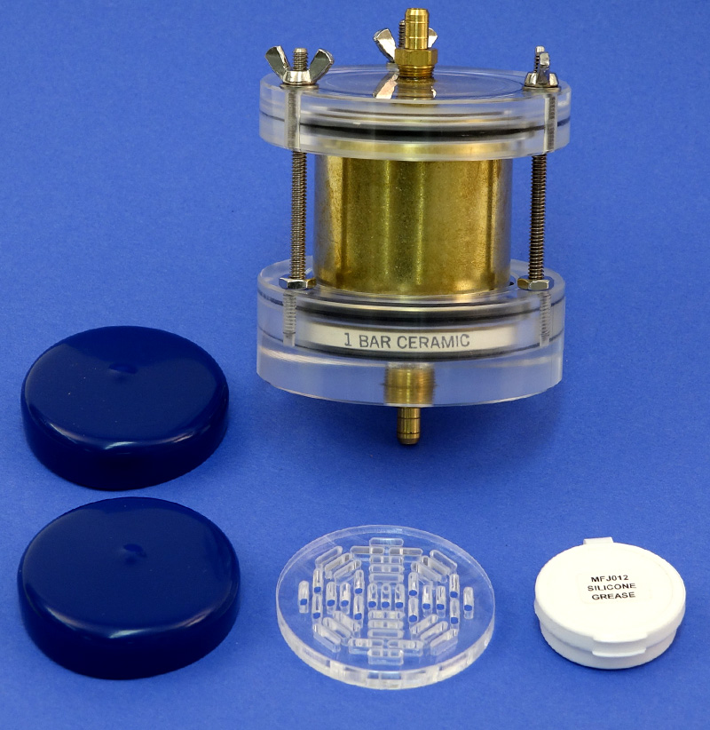 The 1400 Tempe Pressure Cell is used to determine the water-holding characteristics of a soil sample (up to 1 bar). The cell accepts an undisturbed soil sample contained in a 2-1/4" (5.7 cm) diameter x 6 cm tall cylinder, such as that taken with The 0200 Soil Core Sampler. Cell comes with a 1 Bar Ceramic Plate.