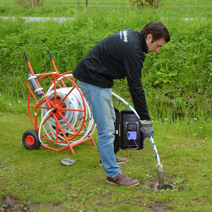 Various standards sets are available with a sampling depth of 30 (art.no. 1227SF with Teflon tube and 1227SL with LDPE tube), 60 (art.no. 1227SG Teflon and 1227SM LDPE tube) and 90 m (art.no. 1227SH Teflon and 1227SN LDPE tube). The standard sets include: the Grundfos MP 1 submersible pump, frequency converter, cooling jacket, service set, cable, hose with connection, hose reel cart and service kit. All materials in the set are fully assembled.