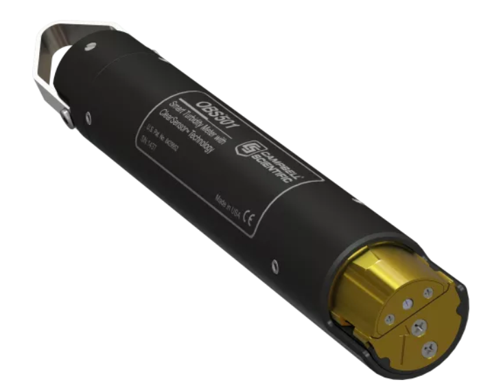 The OBS501 has a unique design with a backscatter sensor for higher turbidity and a sidescatter sensor for lower tubidity. It features a shutter that opens only during measurements to prevent algae buildup.